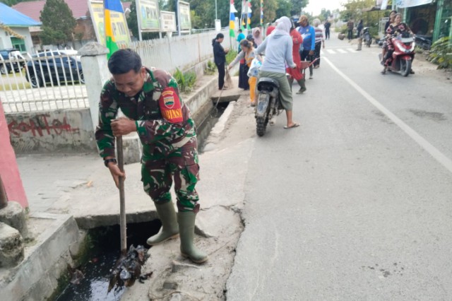 Babinsa Koramil Kutalimbaru jajaran Kodim 0204/DS Serda Dedi Herawan mengatakan kegiatan gotong royong adalah kegiatan rutin dilakukan bersama perangkat desa binaan.