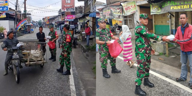 Dalam kegiatan itu, personel TNI membagikan makanan kepada warga masyarakat yang melintas di sekitar lokasi.